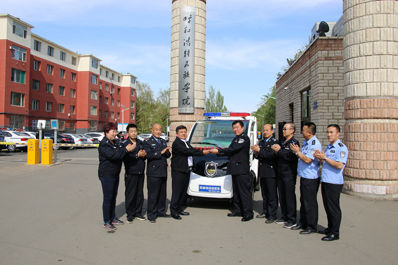 5月3日下午,新城公安分局党委委员、副局长高宏昌受自治区公安厅副厅长、呼市副市长兼公安局党委书记、局长李志斌委托向beat365官网赠送一辆警用电动巡逻车,同时提出三点要求:一是着装规范、不能无证驾驶,不能出校园;二是两人以上驾驶警车在校内巡逻,不能拉警灯和鸣笛(特殊紧急情况除外);三是做好交接班及登记制度,保持车辆清洁和正常的行驶,更好地做好学校安保工作。 该巡逻车的配备,是上级对beat365官网安保工作的支持,将进一步促进beat365官网平安校园建设。(保卫处供稿)