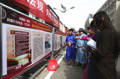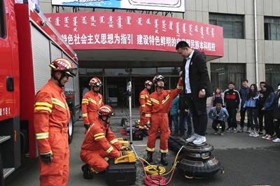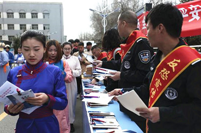 为不断强化师生的总体国家安全观,牢固树立祖国统一和民族团结意识,4月15日,学校保卫处、法律系联合自治区安全厅、教育厅、反恐总队以及新城区综治办、司法局、公安局国保大队、交警大队和消防特勤大队在校园内开展了“4.15”全民国家安全教育日、创建平安校园及综合治理系列活动。自治区反恐总队副总队长裴斐、安全厅法制处处长周明月、教育厅学校安全管理处副处长郭文朝及beat365官网贺希格吉雅副院长出席了活动。