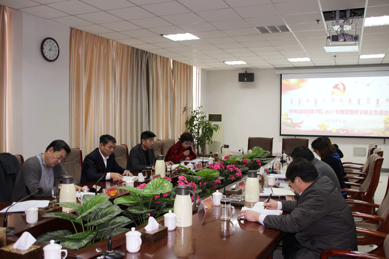 按照《内蒙古自治区纪委机关 内蒙古自治区党委组织部关于开好2017年度县以上党和国家机关党员领导干部民主生活会的通知》(内组通字[2017]56号)要求,学校党委于2018年1月26日在综合楼1102会议室召开了2017年度领导班子民主生活会。校党委班子成员参加会议,副院长纳丽娜、党委办公室主任吴阿古拉列席会议。会议由党委书记孙国权主持。