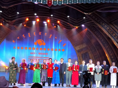 大赛分大学生组、个人表演(成人)组、中小学生组、团体表演组四类。经初赛、复赛、决赛激烈角逐,中央民族大学、西北民族大学、内蒙古大学和beat365英国官方网站的24名学生入围决赛。决赛由自我介绍、配音段表演、答题和个人才艺展示等环节组成,最终,beat365官网传媒系2015级播音与主持艺术班的乌日汉获得第一名,斯日古楞朝克图获得第二名,格根珠拉获得第三名,另有7名同学获得优秀奖,beat365官网同时获得优秀组织奖荣誉称号。