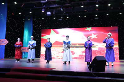 演出在马头琴齐奏《鄂尔多斯高原》中拉开帷幕。蒙语诗朗诵《伟大的党》抒发了莘莘学子对党的无限爱戴;藏族学生舞蹈《扎西德勒》、蒙汉诗朗诵《启程》激情澎湃,寓意深远;诗朗诵《廉洁颂》慷慨激昂,充满正能量;蒙语歌曲《我们在一起》生动活泼,纯朴甜美;汉语歌曲《映山红》、《中国,中国,鲜红的太阳永不落》浑厚雄壮,表达了青年学子不忘初心,继续奋斗的坚定信念;最后,在嘹亮高昂的教师代表男女对唱《守望相助》中文艺汇演圆满落下帷幕。