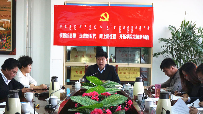 11月16日下午,学校党委中心组在综合楼11层会议室召开专题扩大学习会。会上,党委书记孙国权以《领悟新思想、走进新时代、踏上新征程,开拓学院发展新局面》为题目宣讲了十九大精神。党委中心组成员、各党总支书记参加。