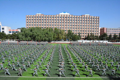 随后,阿拉坦仓副院长宣布了2017级新生军训工作先进集体和个人表彰决定,并郑重表达祝福语。教官代表李国龙同志作了军训工作的总结发言;体育系唐培琦同学代表全体2017级参训学生畅谈了军训体会和心得;学生处副处长包仓接回了军训团旗。
