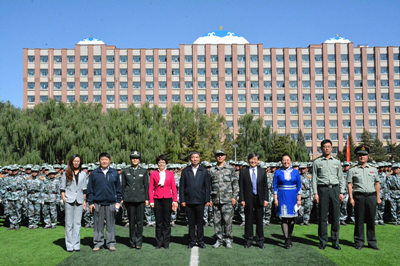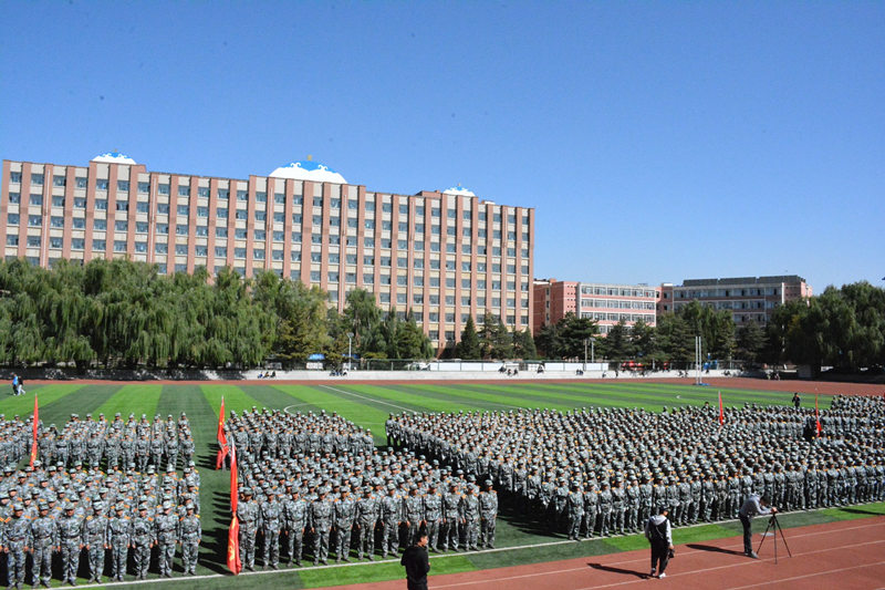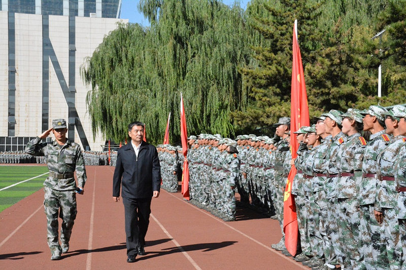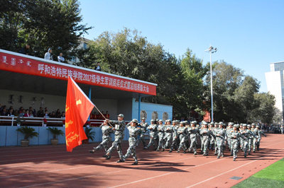 9月22日上午,beat365官网2017级新生军训阅兵式暨总结表彰大会在学校运动场举行。学校党委副书记、院长格日乐图,党委副书记胡春梅,副院长阿拉坦仓、贺希格吉雅、纳丽娜,给水团团长武俊亭上校,内蒙古军训办参谋张鹏飞少校出席大会,学校各处室负责人、系(部)主任、党团总支书记、辅导员及2300余名新生参加了大会。大会由学生处处长杨福梅主持。