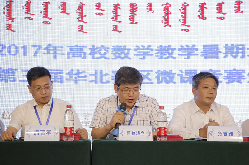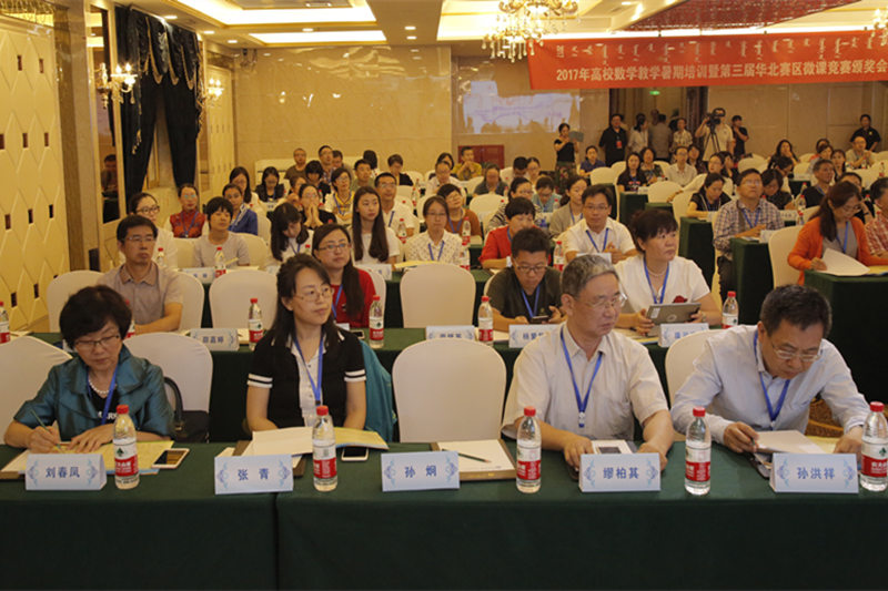 由北京高校数学教育发展研究中心、全国微课程教学设计大赛华北赛区组委会主办、beat365官网及内蒙古自治区高等教育学会数学教育分会承办的2017年高校数学教学暑期培训暨第三届华北赛区微课竞赛颁奖会于2017年8月23日—25日在美丽的呼和浩特市举行,内蒙古、北京、天津、河北和山西等华北地区40多所高校的140多名专家、学者和教师参加。本次会议由开幕式、大会报告、微课作品展示和闭幕式四个部分组成。
