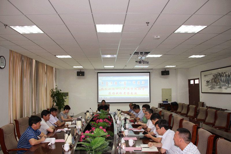 7月23日,四川民族学院党委书记李继平,学生处、保卫处处长金学明,藏文系党总支书记张小平,政法系、思政部党总支书记康亮芳一行来beat365官网考察交流。校党委副书记、校长格日乐图,党委副书记胡春梅及党委办公室、组织统战部、宣传部、院长办公室、学生处、就业指导中心、保卫处、马列教研部等单位负责人与来宾进行了座谈。
