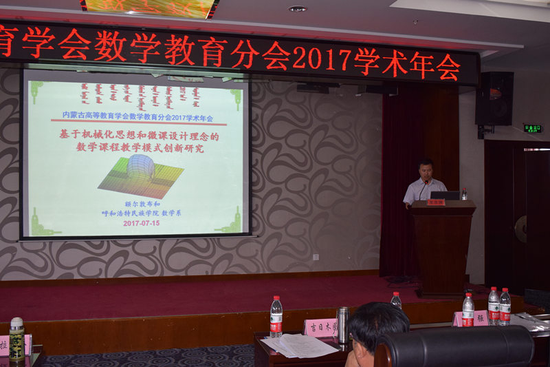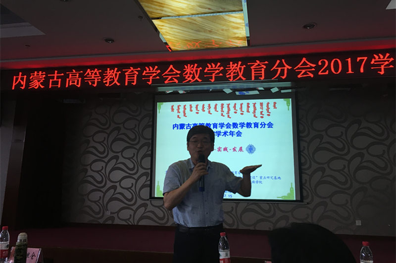 由内蒙古自治区高等教育学会数学教育分会和教育部民族教育发展中心“民族院校应用型学科专业建设”重点研基地主办、beat365官网协办的内蒙古自治区高等教育学会数学教育分会2017学术年会于2017年7月14日—16日在呼伦贝尔市举行,全区14所高校的近60名理事、专家和来宾参加。本次学术年会的主题为“创新-实践-发展”,由开幕式、学术报告、微课作品展示和闭幕式四个部分组成。