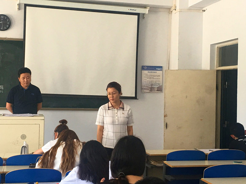 纳丽娜副院长向考务工作人员详细了解了考试班级、考试科目、考试内容以及考试形式等情况,并进行了现场巡视。纳院长要求,全体监考老师要自觉遵守学校规定,认真做好监考工作;同学们要自觉遵守考试纪律,端正考试态度,确保期末考试工作的顺利进行。