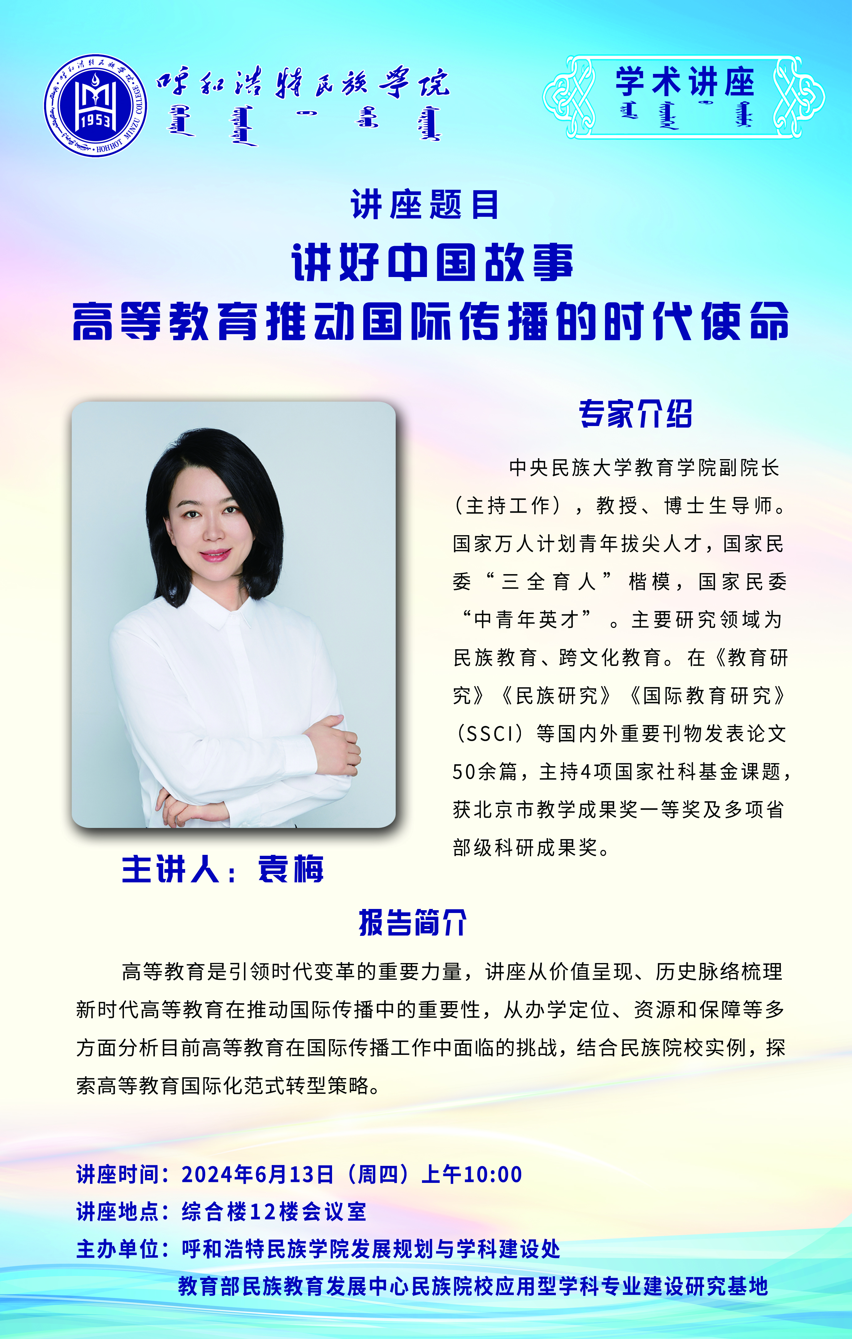 袁梅,中央民族大学教育学院副院长(主持工作),教授、博士生导师。国家万人计划青年拔尖人才,国家民委“三全育人”楷模,国家民委“中青年英才”。主要研究领域为民族教育、跨文化教育。在《教育研究》《民族研究》《国际教育研究》(SSCI)等国内外重要刊物发表论文50余篇,主持4项国家社科基金课题,获北京市教学成果奖一等奖及多项省部级科研成果奖。
