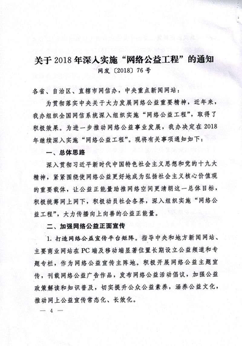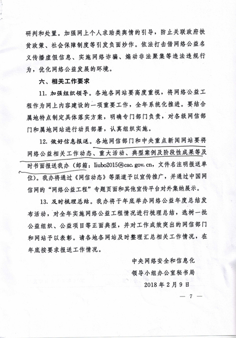 各党总支: 现将《2018年深入实施“网络公益工程”的通知》转发给你们,请结合工作实际,加强组织领导,开展形式多样的网络公益活动。年终时,各党总支要将网络公益相关工作动态、典型案例及阶段性成果上报至宣传部(邮箱mzxyxcb@126.com)。
