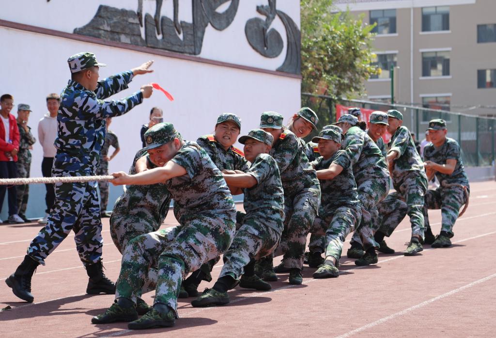 随后,进行了新生拔河比赛。赛前,各营各连教官和指导员为参赛同学做了详细的技术指导。比赛中同学们斗志昂扬,信心满满,奋勇争先。经过多轮的淘汰赛,最终化学与环境学院获得冠军、经济管理学院获得亚军、音乐学院获得季军。