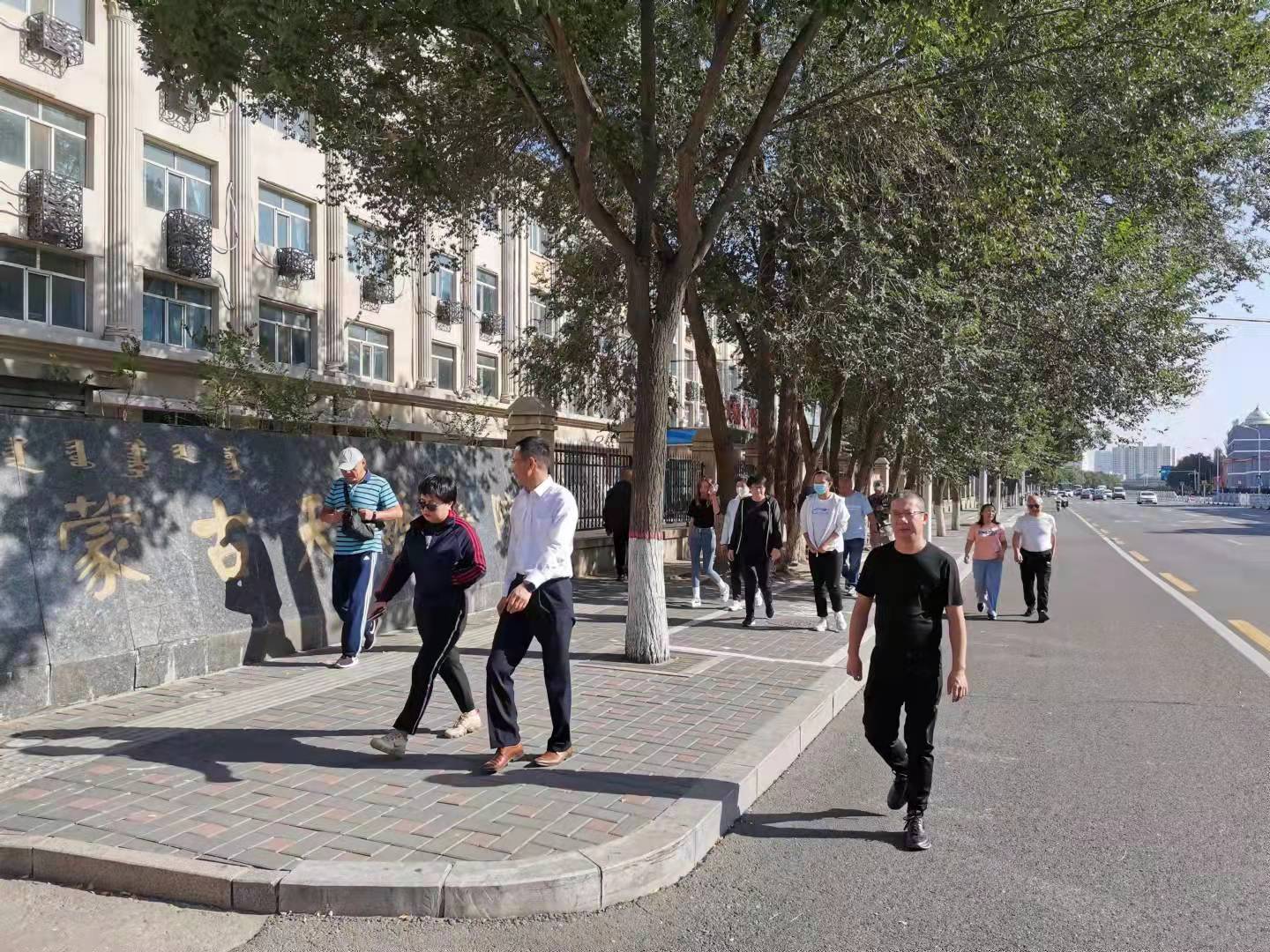 健步行万里,斗志愈昂扬。为深化民族团结进步教育,铸牢中华民族共同体意识,弘扬民族团结奋斗精神,9月29日下午,行政分工会开展“守望相助团结奋进”健步走活动,教师们从学校西门出发,途经赛马场北路、气象局北路,最后由学校东门返回。