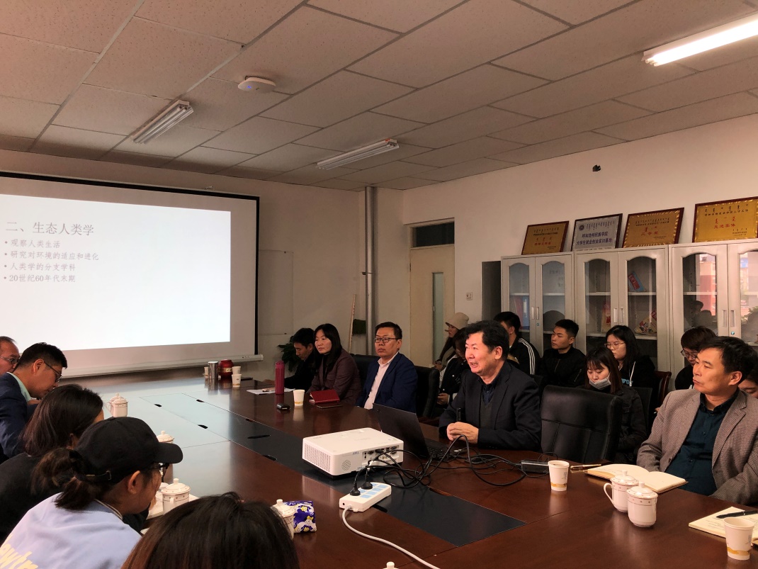 10月14日下午,民族学学院举行了“敕勒川”系列学术讲座。本次讲座邀请了国务院学位委员会民族学学科评议组成员、教育部高等学校民族学类本科教学指导委员会委员、中国民族学学会常务理事、内蒙古大学民族学与社会学学院院长、内蒙古大学铸牢中华民族共同体意识研究中心常务副主任阿拉坦宝力格教授为广大师生作了题为《生态人类学与牧区现代化》的学术讲座。讲座由民族学学院副院长青斯琴博士主持。