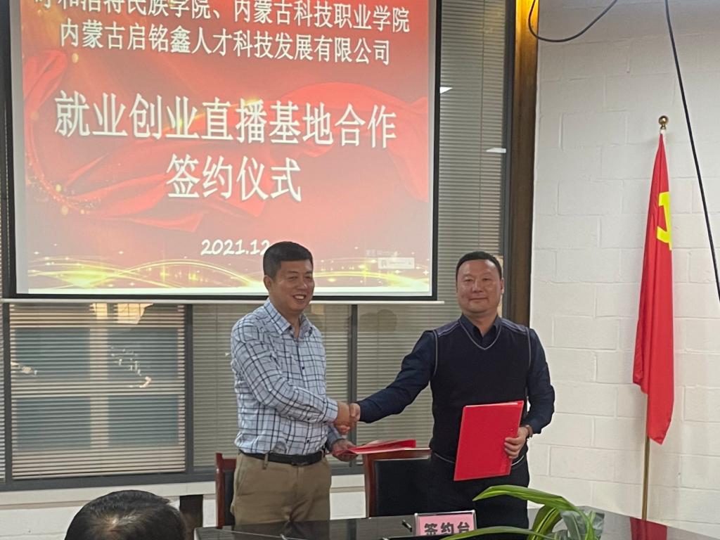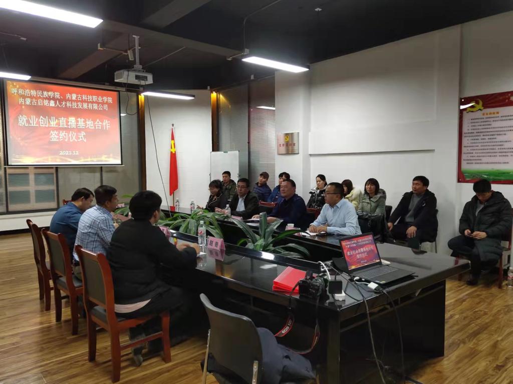 12月20日,beat365官网就业指导处与内蒙古启铭鑫人才科技发展有限公司签定就业创业直播基地合作协议。就业指导处工作人员和外国语学院、经济管理学院等八个学院就业工作人员参加签约仪式。