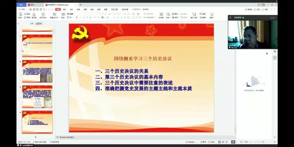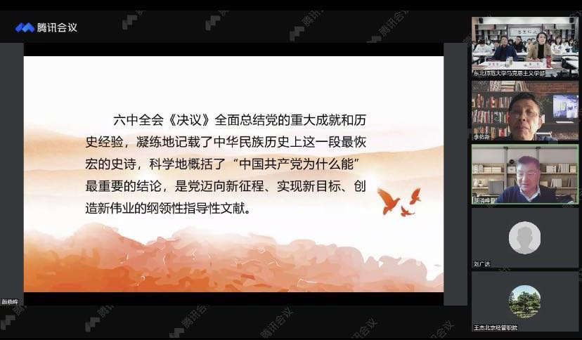 11月13日参加东北师范大学马克思主义学部举办的“研究和阐释党的十九届六中全会精神”系列讲座