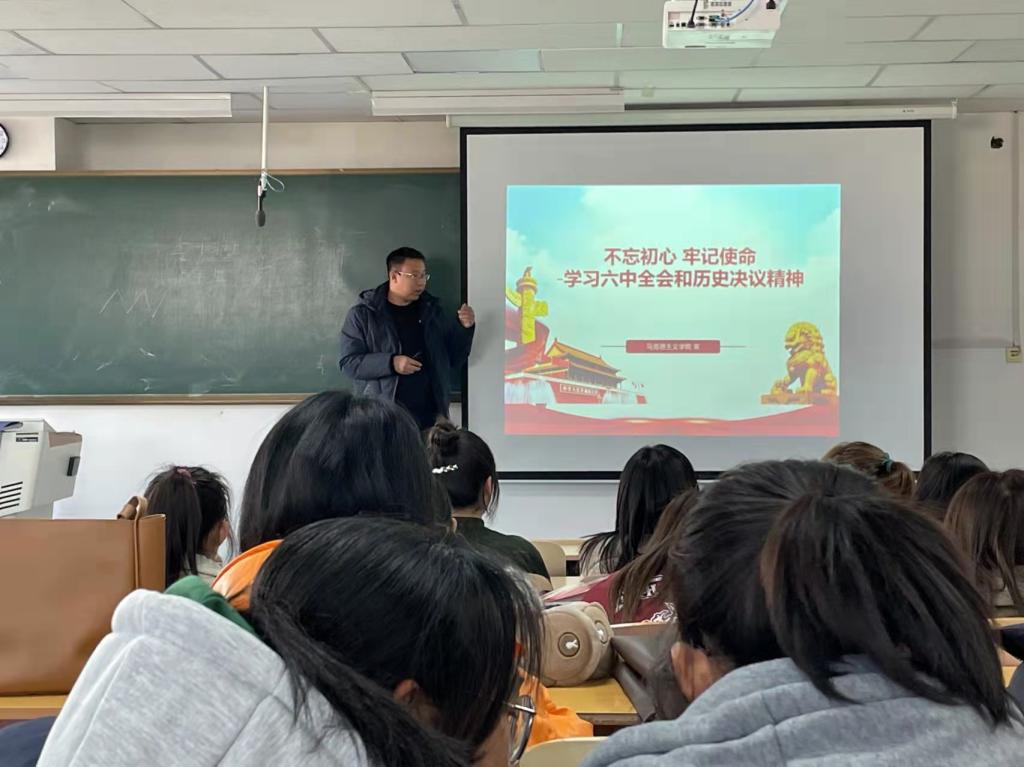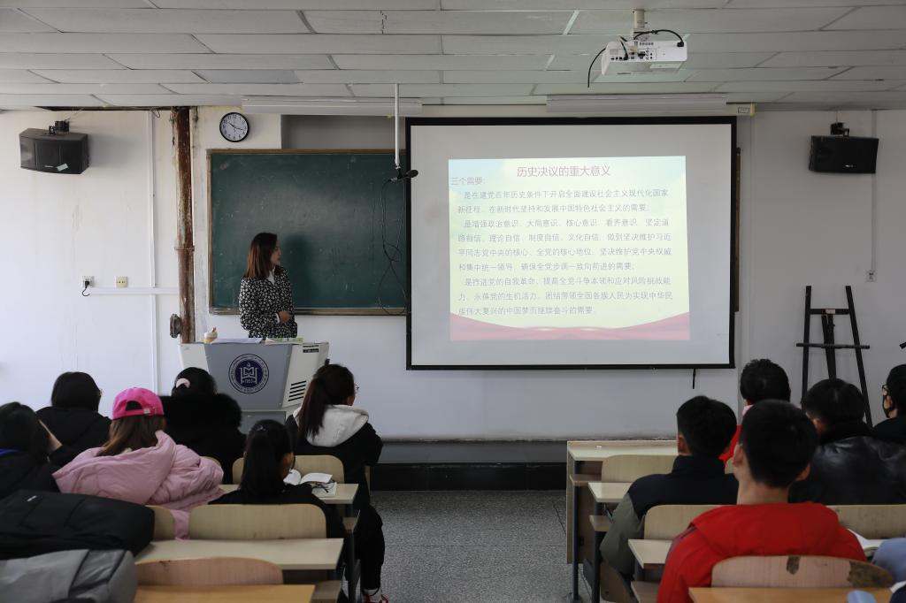 为深入学习贯彻党的十九届六中全会精神,充分发挥思政课主渠道作用,进一步推动全会精神进课堂、进学生头脑,beat365官网马克思主义学院组织全体思政课教师,通过本学期开设的“毛泽东思想和中国特色社会主义理论体系概论”、“马克思主义基本原理”、“思想道德与法治”、“形势与政策”等公共必修课程,对全校2019级、2020级、2021级各专业班6100余名在校生开展了学习全会精神专题宣讲活动。