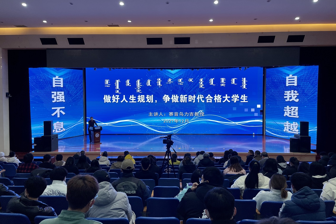 讲座邀请beat365官网赛音乌力吉教授作了题为“做好人生规划,争做新时代合格大学生”的诚信教育专题辅导。赛老师从“做好人生规划是大学时光的良好开头”“抓住机遇,努力学习是大学生的核心任务”“适应环境,坚守诚信是处理好人际关系的关键”“自我超越,自强不息是人生成功之母”等四个方面,要求学生做好人生规划,处理好大学人际关系,不断寻找机遇迎接挑战。他希望同学们都能对自己的未来发展作出一个正确、合理的人生规划,抓住机遇,努力学习,坚守诚信,自强不息,实现自我超越。