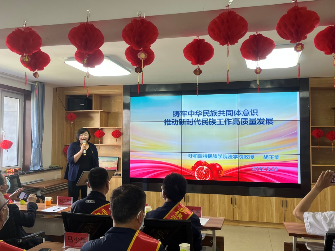 活动中,法学院教工党支部书记胡玉荣教授在回民区三顺店社区作题为“铸牢中华民族共同体意识,推动新时代民族工作高质量发展”民族团结辅导讲座。讲座围绕深刻把握中华民族多元一体的基本国情,全面认识民族团结进步事业的伟大成就,推动新时代党的民族工作高质量发展等三个方面,用平实的语言、生动的事例给与会人员上了一堂深刻的民族团结进步思想理论课。