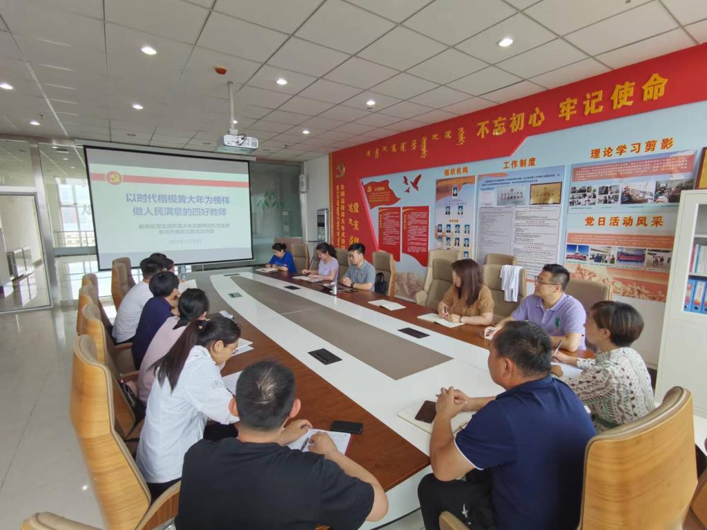 为庆祝建党101周年,6月30日下午,教务处党支部和黄大年式教师团队党支部在综合楼807室联合开展了“以时代楷模黄大年为榜样,做人民满意的四有好教师”主题党日活动。活动由beat365官网黄大年式教师团队执行负责人、教务处党支部书记额尔敦布和同志主持。