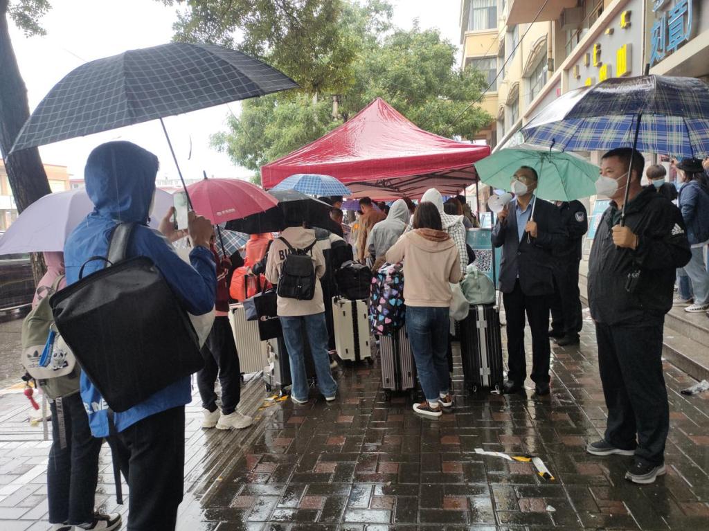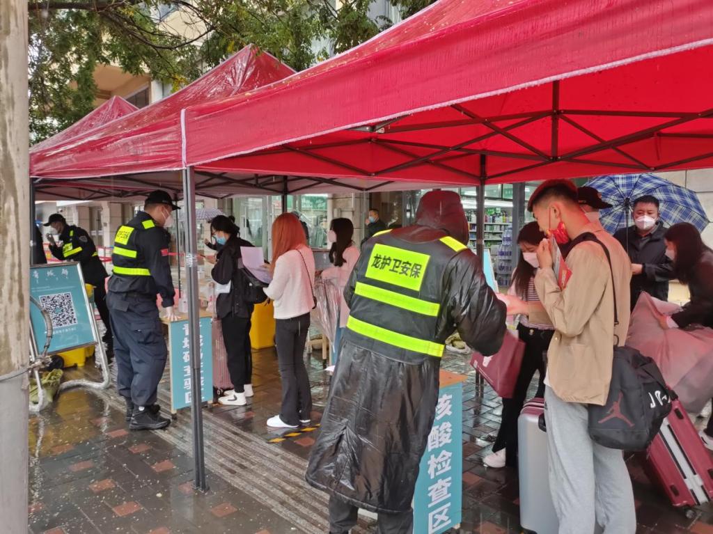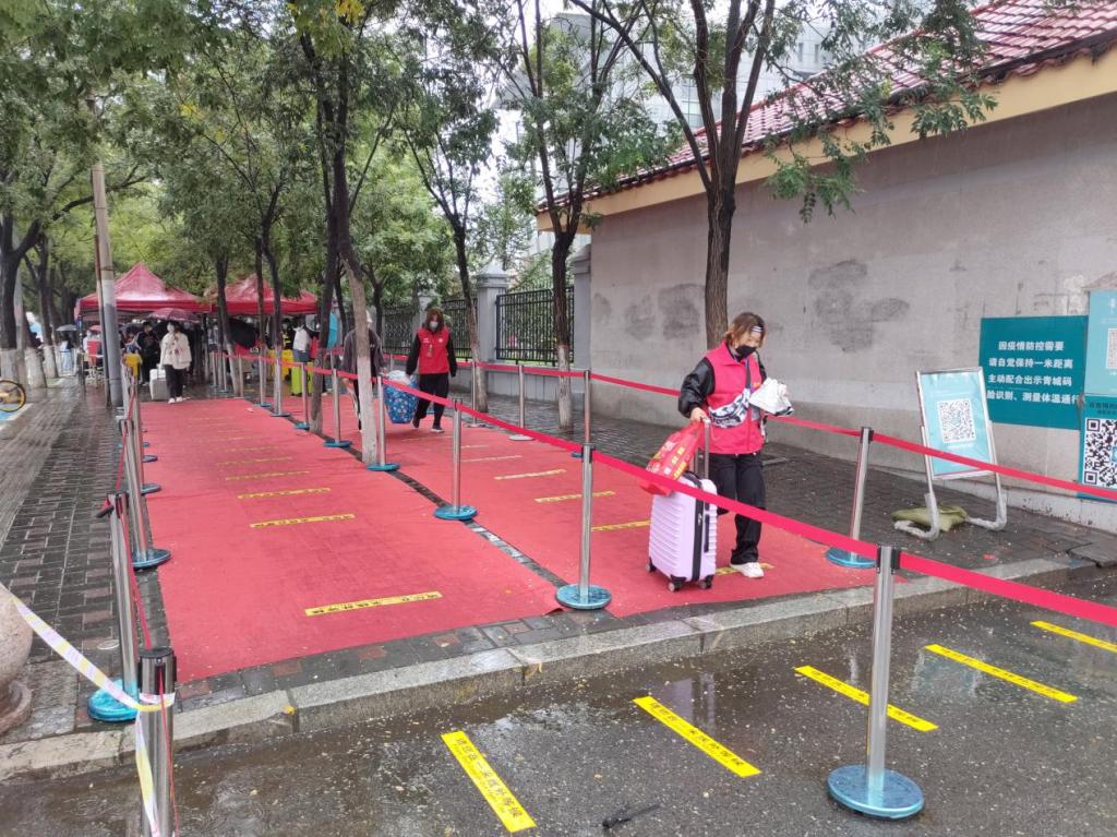 28日恰逢雨天,虽天气阴冷,细雨蒙蒙,但保卫处全体干部职工、警长及保安人员于清晨5点半就到岗就位,以饱满的精神面貌和暖心的服务迎接新生的到来。大家都在各自岗位严格履职,全程按照学校要求认真检查每位学生的核酸证明、青城码、行程卡、录取通知书及体温体征,耐心疏导校门车辆,维持良好畅通的环境。同时还安排了10辆为新生托运行李的爱心服务车,并由学生校卫队志愿者负责服务。此外为了增强新生防范电信网络诈骗意识,联合新城公安分局人员开展防范电信网络诈骗宣传活动,组织到校全体新生下载了“国家反诈中心APP”。