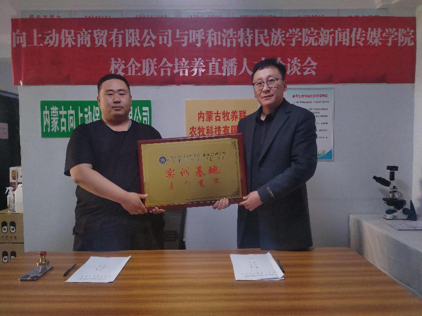 内蒙古向上动保商贸有限公司当前急需影像制作人才和网络主播搭建线上直播平台。学院党总支书记额尔敦毕力格根据学院专业设置和人才培养情况,有针对性地与企业负责人进行了合作洽谈,同时结合学院办学方向和学生生源特点,与企业共同制定了专业培养机制和人才输送方案,签订校企合作协议,挂牌实训基地,为日后可能达成了一系列合作奠定基础。