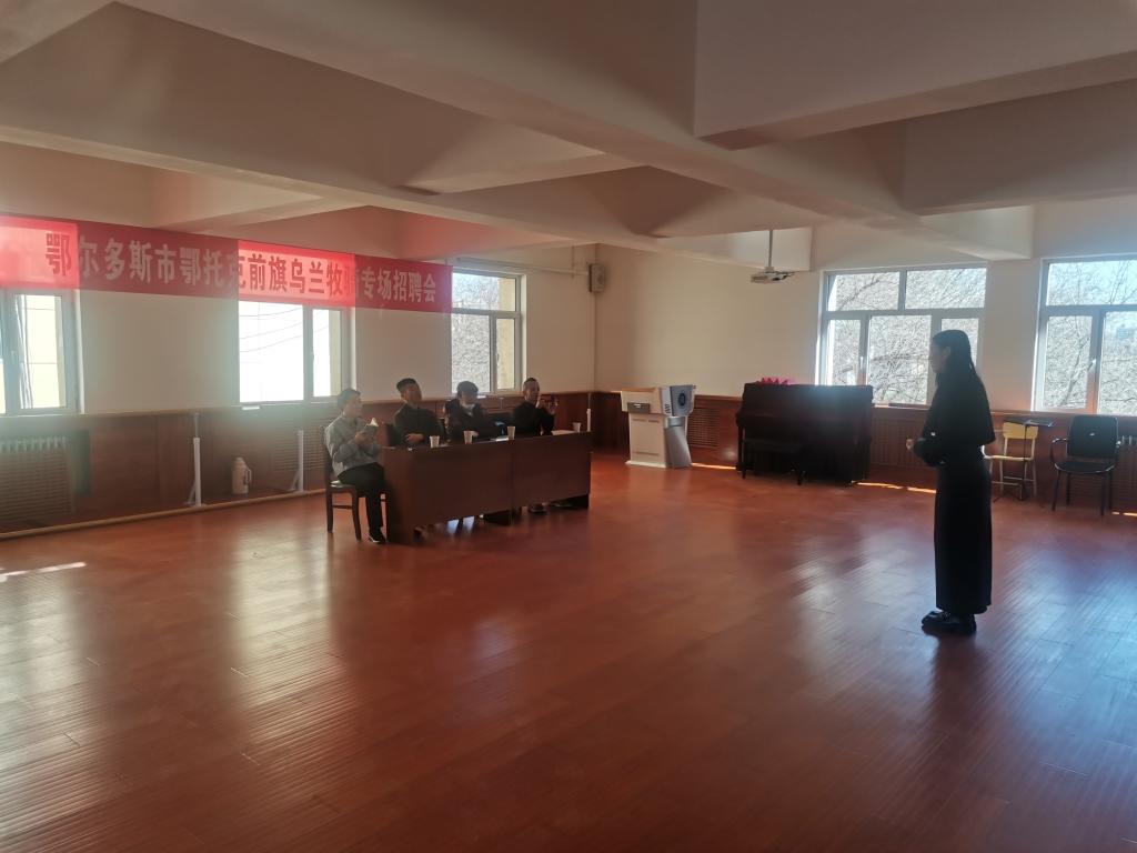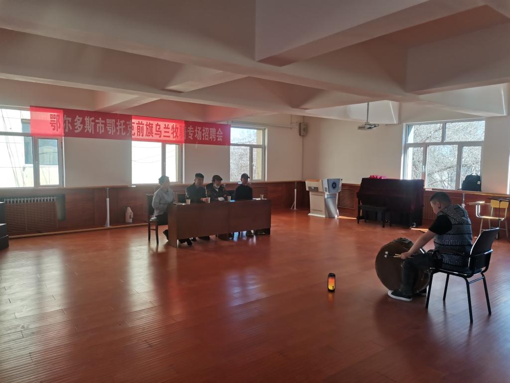 为深入贯彻党的二十大精神,全面落实学校党委关于推进2023届毕业生就业工作的相关要求,音乐学院抢抓春季就业关键节点,全力搭建毕业生与用人单位交流平台,于3月17日上午举办鄂尔多斯市鄂托克前旗乌兰牧骑专场招聘会。招聘会由学院党总支书记格日乐、副院长韩木兰主持。