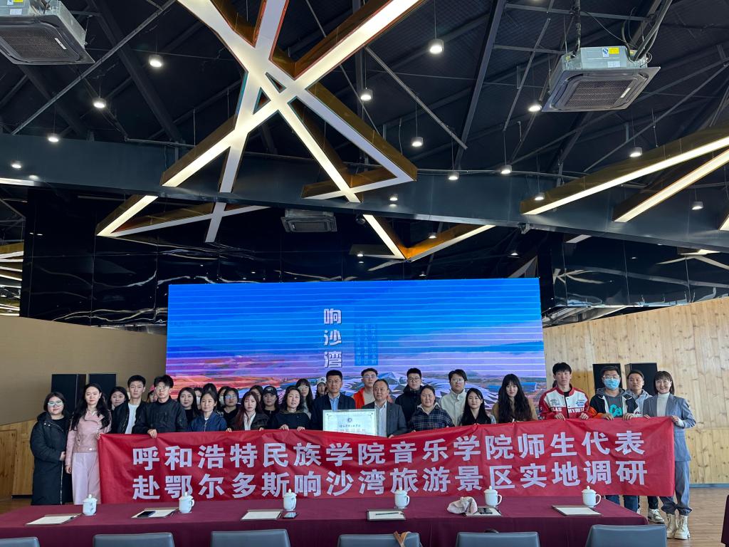 为深入贯彻党的二十大精神,全面落实学校关于推进2023届毕业生高质量就业工作的相关要求,开拓实习实训基地,着力搭建好毕业生与用人单位交流平台,音乐学院院长齐占柱、副院长韩木兰带领30余名师生于4月8日奔赴鄂尔多斯响沙湾旅游有限公司进行实地调研,开展访企拓岗,并建立了实习实训基地。