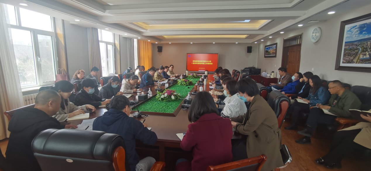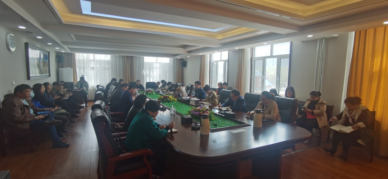 2023年4月12日上午,在办公楼二楼会议室学校召开2023年一流本科课程申报部署会议,由教务处处长额尔敦布和主持。