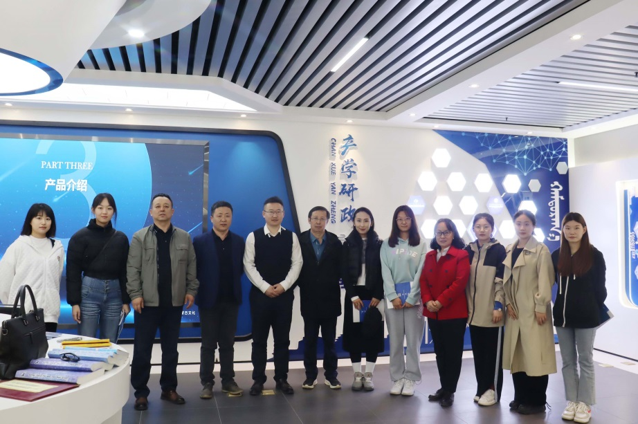 为帮助参加第九届“互联网+”大学生创新创业大赛的项目组同学进一步打磨参赛项目,备赛树立标杆和典型,提升学生创新精神与创业就业能力,4月12日下午,创新创业学院组织培育项目《云上非遗——用数字推动民族服饰非遗传承》、《红耀北疆一一传播新时代的好声音》、《精工匠行—创新非遗蒙镶工艺》、《智记民歌—创意活化新时代的领航者》团队负责人到内蒙古蒙科立蒙古文化股份有限公司进行参观学习,并进行座谈。