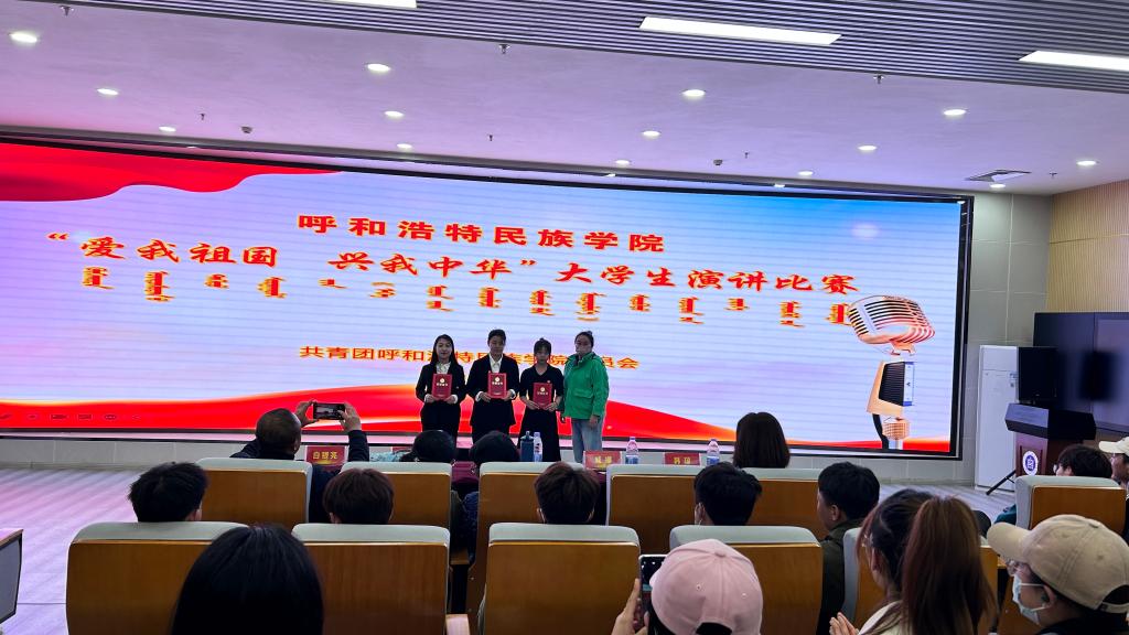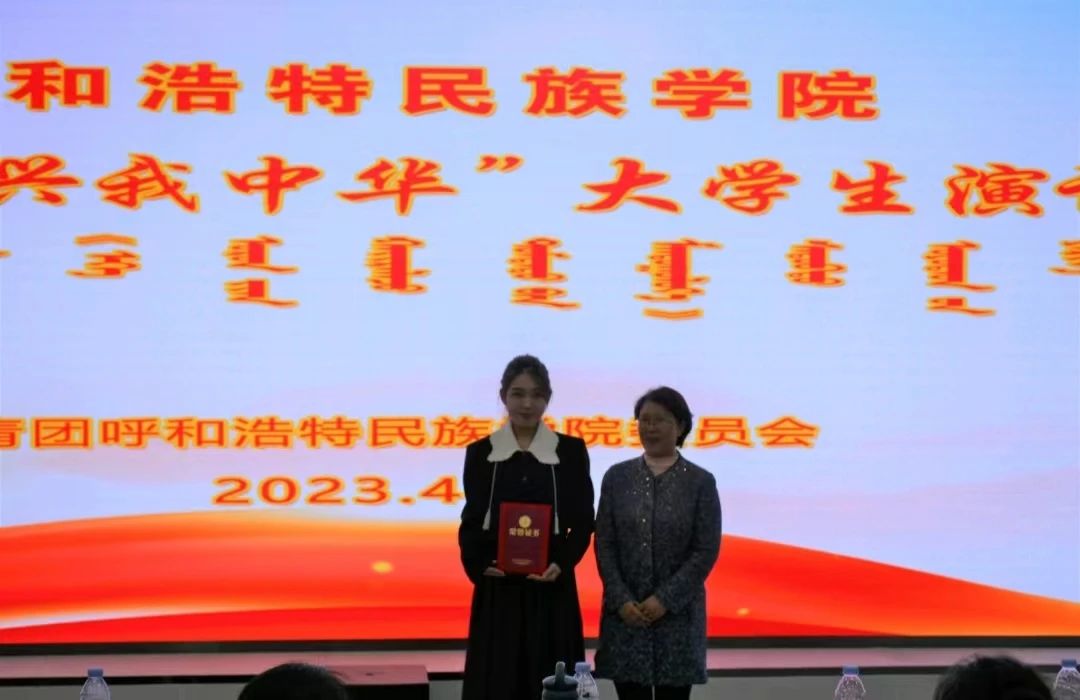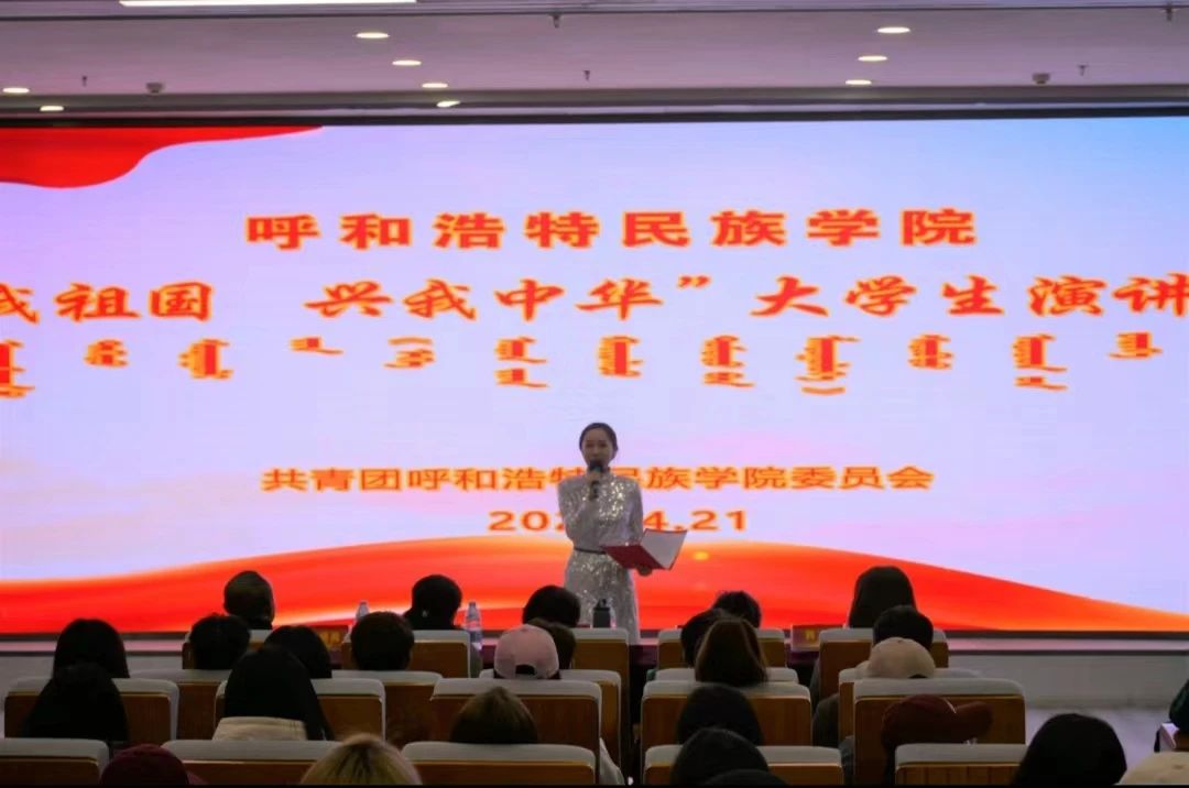 为深入学习宣传贯彻党的二十大精神,引导广大青年学生进一步铸牢中华民族共同体意识,校团委于4月21日晚在图书馆一楼报告厅举办了“爱我祖国、兴我中华”大学生演讲比赛。文学院教授杜勍妹、文学院副教授乌兰哈斯、团委副书记白银亮、就业指导处副处长威娜、马克思主义学院党总支副书记韩琼担任本次比赛评委。