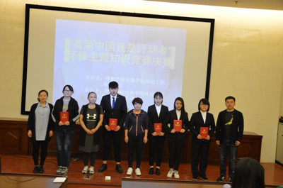 最后,本次系列活动以“建设美丽中国我是行动者”主题知识竞赛为收官,竞赛首先于4月18日晚7时,在都林楼107教室举行了初赛,并评出了五名表现优秀的系(部)晋级决赛;在4月28日晚,“建设美丽中国我是行动者”环保主题知识竞赛决赛在图书馆一楼报告厅拉开了帷幕,比赛现场各系参赛选手团队合作默契,最终教育系获一等奖,汉语言文学系获二等奖,环境工程系获得三等奖,外语系、管理系获得优秀奖。