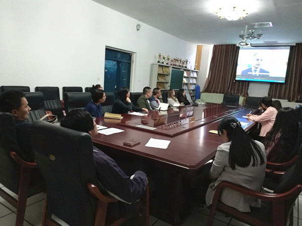 4月26日下午,马列教研部教工党支部和学生党支部联合组织全体党员师生在本部会议室观看了大型纪录片《辉煌中国》第六集《开放中国》 。