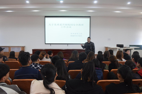 为了进一步加强学生安全意识教育,深入落实学校各项安全管理制度和措施,全面普及安全常识,消除安全隐患,美术系于4月8日在美术楼四楼阶梯教室召开了学生安全教育会议。会议由美术系团总支书记白永泉主持,美术系学生会干部、各宿舍长参加了会议。