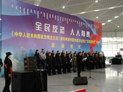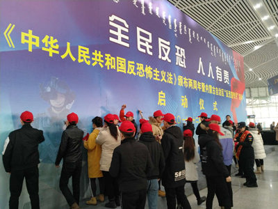 12月27日上午,《中华人民共和国反恐怖主义法》颁布两周年暨自治区“反恐宣传月”活动在呼和浩特市火车东站举办,自治区政府副主席、公安厅厅长马明出席活动并讲话。自治区公安厅副厅长成映泽主持会议。