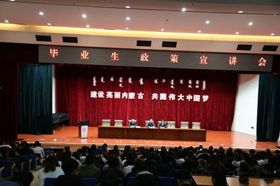 宣讲会,首先邀请新疆维吾尔自治区和田地区策勒县县教工委副书记、教育局书记、副局长刘晓东同志为广大师生详细解读新疆维吾尔自治区基础教育巩固阶段大批量引进教师的政策措施,并就新进教师学习生活保障条件、薪酬待遇、社会秩序等方面进行了全面介绍。接着,朝格吉乐图主任就“2018届全国普通高校毕业生就业创业工作网络视频会”精神和林慧青副部长指出的“充分理解新时代教育战线重要思想的重大意义,实现更高质量更加充分就业;多渠道就业市场导向和政府指导结合;鼓励毕业生到边缘山区和祖国需要的地方工作”等讲话精神进行了解析。