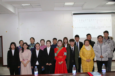 为进一步增进大学生对党的认识,坚定感恩共产党,永远跟党走的信念,12月6日19时20分,蒙古语言文学系在都林楼116教室举办以“思想奠基,锤炼青春,永远跟党走”为主题的演讲比赛。经济系学生会主席兰兰、计算机系学生会主席许天龙、环境系学生会副主席青格乐、蒙古语言文学系学生会主席朝宝力高及蒙古语言文学系全体学生会干部观看了比赛。