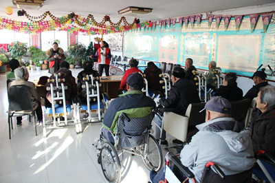 文艺部志愿者们为老人们表演节目