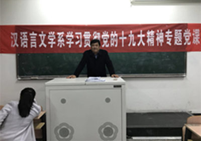 党员们借着这次党课认真学习十九大会议精神,时刻谨记“不忘初心,牢记使命,高举中国特色社会主义伟大旗帜”这一主题,为实现中华民族伟大复兴的中国梦贡献出自己的一份力量。(汉语言文学系供稿)