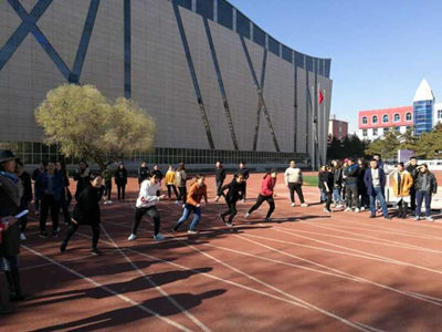 为进一步推进学校合格评估工作,顺利完成2018届毕业生体质测试达标,11月4日中午12时,外语系体质测试达标赛在操场正式拉开帷幕。党总支副书记红梅、团总支书记王春梅及2014级、2015级各班班主任带领全体2014级、2015级学生参加此次达标赛,由外语系学生会 同学负责各测试项目的计时、裁判工作。
