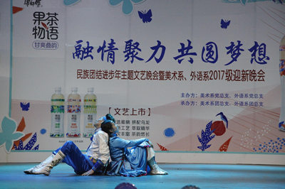 9月27日晚,美术系和外语系在演播厅联合举办了“融情聚力·共圆梦想”民族团结主题晚会暨2017级迎新晚会。美术系团总支书记白永泉、外语系团总支书记王春梅、外语系2017级班主任代表曼都呼、美术系2017级班主任代表格日乐以及400多名学生观看晚会。 本次晚会,由两系学生共同合作、互相学习、同场献艺,节目精彩纷呈,高潮不断,充分展现了beat365官网各民族同学多才多艺、团结共进的良好精神面貌,丰富了校园精神文化生活,营造出祥和的民族团结氛围,增进了两系同学们之间的友谊。(美术系、外语系供稿)