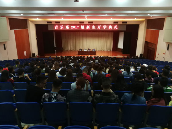 9月27日晚,音乐系在图书馆二楼报告厅举办音乐系2017级新生开学典礼,音乐系党总支书记赛音乌力吉、系主任齐占柱、系副主任萨日胡、部分教师以及音乐系全体学生参加,典礼由音乐系主任齐占柱主持。