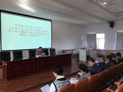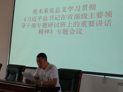 2017年9月21日下午,美术系党总支召开中心组(扩大)会议,专题学习了习近平总书记7月26日在省部级主要领导干部专题研讨班开班仪式上的重要讲话精神。会议由美术系党总支副书记包旭东主持。
