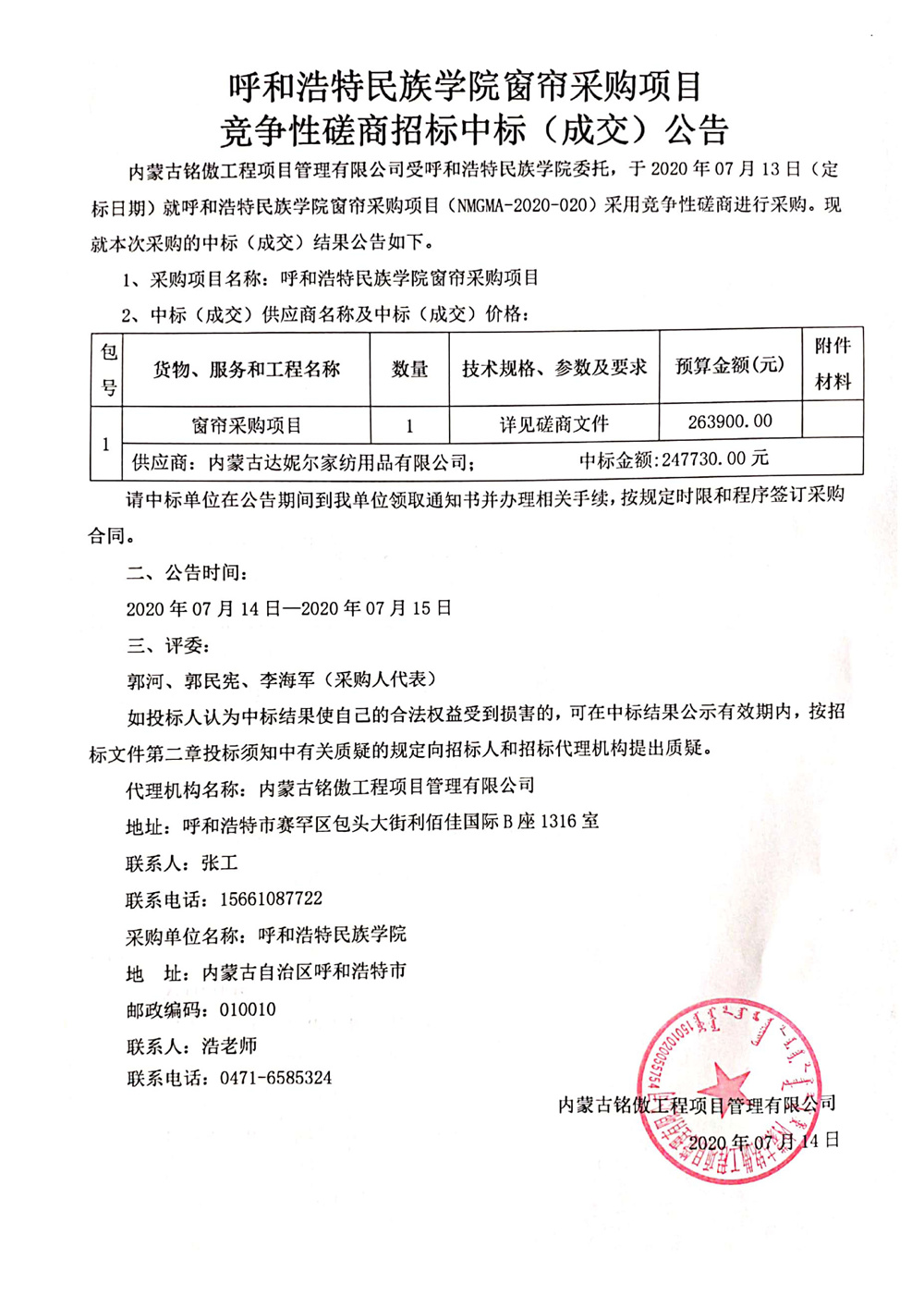 beat365英国官方网站窗帘采购项目竞争性磋商招标中标(成交)公告