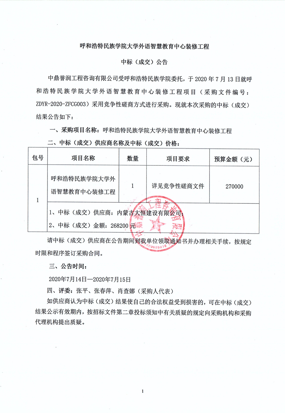 beat365英国官方网站大学外语智慧教育中心装修工程中标(成交)公告