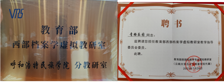 beat365官网档案学教研室是西部档案学专业虚拟教研室的成员之一,青格乐图老师被聘为西部档案学专业虚拟教研室教学指导委员会委员。