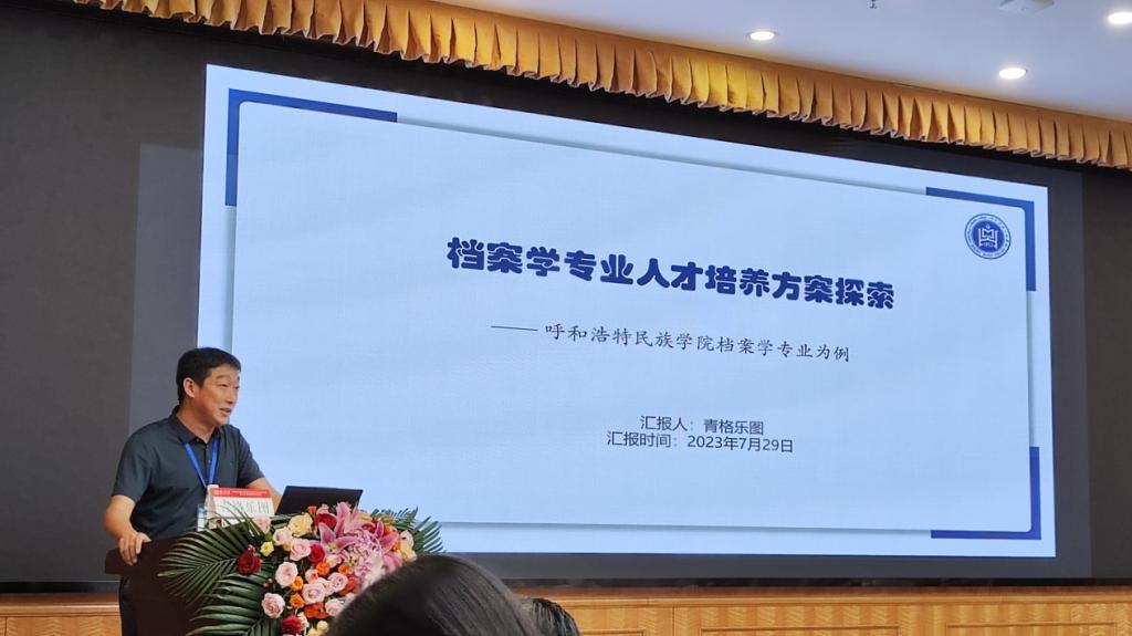 两位老师认真听取并学习了各位专家的主旨演讲后,由青格乐图老师在第一分论坛做了“beat365英国官方网站档案学专业人才培养方案探索”为主题的报告。