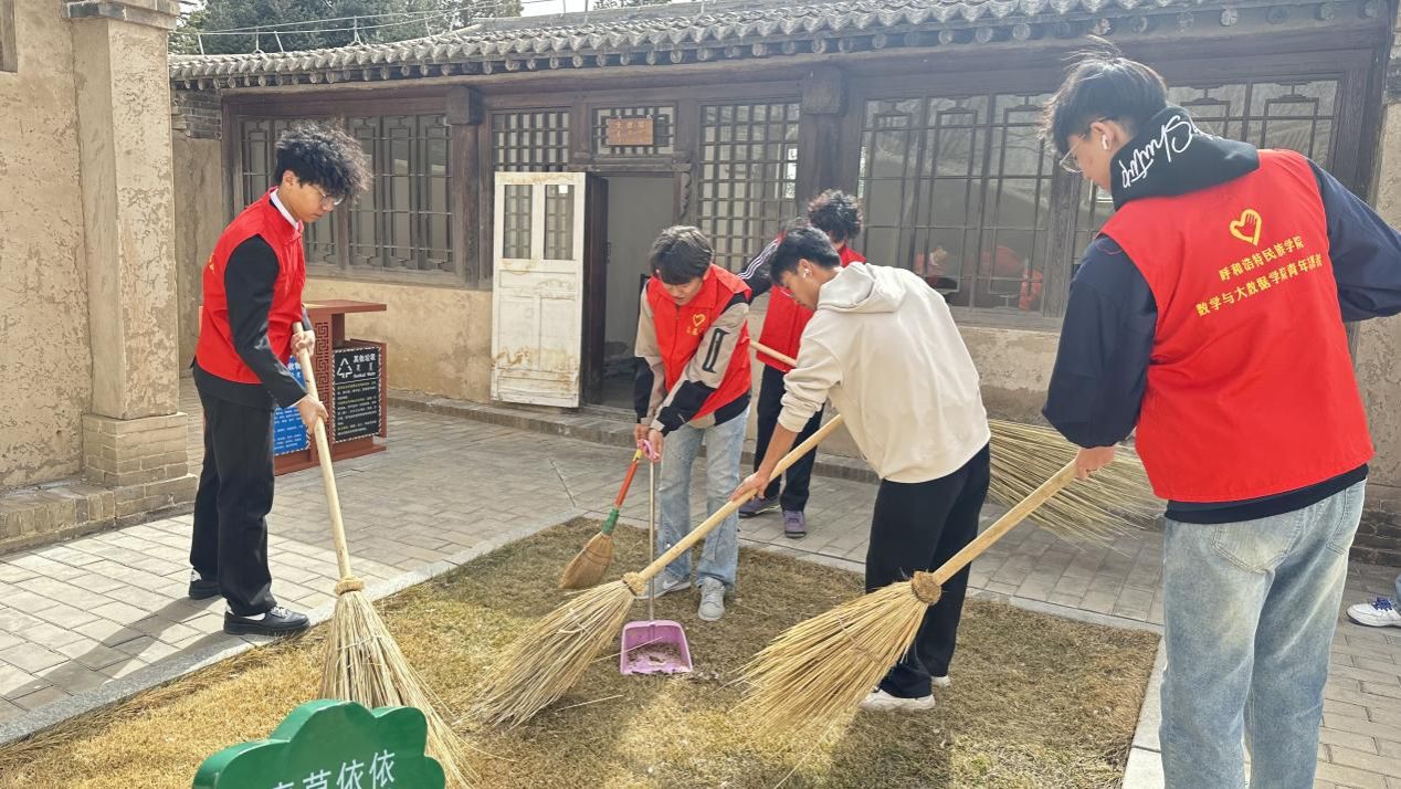 支部活动结束后,志愿者们领取工具,有序地进行打扫故居里亭、清扫庭院落叶等一系列工作。