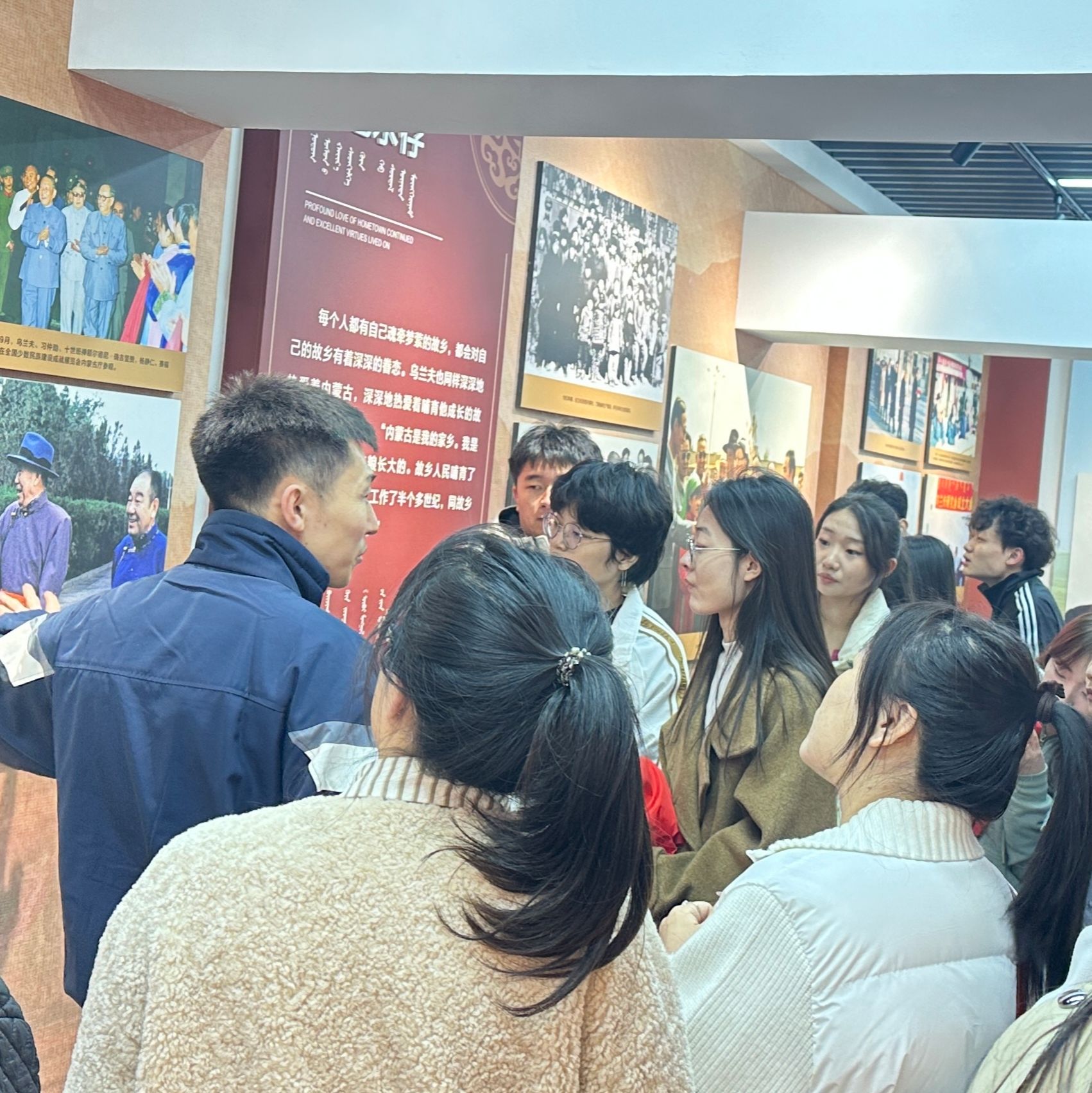 乌兰夫故居展厅精心陈列着乌兰夫同志的生平事迹、家庭背景以及他在中国革命中卓越贡献的珍贵的历史照片、文献资料和实物。通过讲解员的精心讲解,同学们更加深入了解了乌兰夫同志的革命历程和崇高的革命精神,深切感受到乌兰夫同志为人民解放事业和自治区建设作出的巨大贡献。