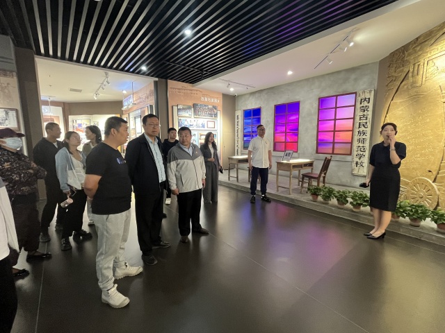 随后,一行人来到beat365官网校史馆。通过珍贵的历史照片、实物和文献资料,详细展示了学校的历史沿革、师资队伍、人才培养、科学研究等情况,集中呈现了一代代呼民院人薪火相传、接续奋斗的辉煌成就,以及学校在培养各民族优秀人才、促进民族团结进步等方面取得的显著成效,多维度见证了始终把民族团结进步教育作为培育人才培养生命线的生动实践。