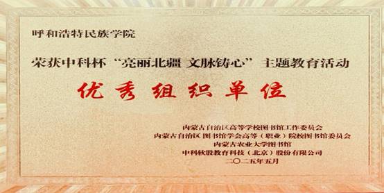 中科杯“亮丽北疆 文脉铸心”主题活动吸引了全区40余所高校、19000余名师生的广泛参与。图书馆对本次活动高度重视并进行大力宣传,最终在学生工作部、团委和各二级学院的积极配合下,全校700余名师生参与活动并取得了优异成绩。图书馆荣获“优秀组织奖”;文学院王含鲜荣获本科院校学生组二等奖;计算机与信息技术学院周鑫、马克思主义学院卜令慧、音乐与舞蹈学院乔丹荣获本科院校学生组优秀奖;图书馆郝喜凤、薛芳、石梅荣获优秀指导教师奖。本次活动实现了引导师生深入学习贯彻习近平新时代中国特色社会主义思想,全面落实党的二十大及二十届二中、三中全会精神,弘扬中华优秀传统文化、培育践行社会主义核心价值观的目标,为实现中华民族伟大复兴凝聚起呼民院的青春力量。